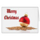 Bauble and Star - a red Christmas bauble on top of a golden star ornament - with old style text "Merry Christmas" layered in red and green. Customize with your Christmas message on the inside.