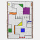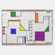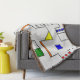 This throw blanket has a Bauhaus design of lines going vertically and horizontally to make a grid with squares, rectangles, triangles, and circles placed around the grid. If you like the design but prefer different colours, message me.