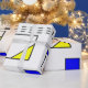 This wrapping paper has a Bauhaus design of lines going vertically and horizontally to make a grid with squares, rectangles, triangles, and circles placed around the grid. If you like the design but prefer different colours, message me.