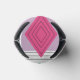 This can cooler has a Bauhaus design of diamonds on purple strips with a design meant to look like quilting.