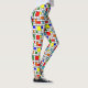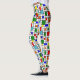 These leggings have a Bauhaus design of a grid with squares and rectangles in red, green, blue, orange, light blue, yellow, and red.