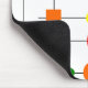 This mouse pad has a Bauhaus design of a grid with shapes in red, yellow, orange, green, and blue plotted on it.