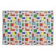 This pillowcase has a Bauhaus design of a grid with squares and rectangles in red, green, blue, orange, light blue, yellow, and red.