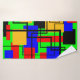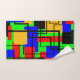 This towel set has a Bauhaus Design of rectangles, and squares with black lines traversing the design on a field of green.