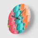 This clock has a Bauhaus-inspired design of shapes and lines in different shades of mid-century modern colors.