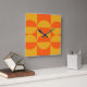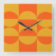 This clock has a Bauhaus design of squares and circles in yellow and orange.