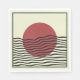 Minimalist Bauhaus wall art with a bold red sun and flowing black waves. Modern, abstract, and perfect for stylish home decor.