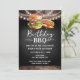 Invitations pour barbecue anniversaire. Facile à personnaliser. Tout le texte est ajustable et facile à changer pour vos besoins de partie. Chaîne éclairant des éléments arrière - plans rustiques. Fun Chalkboard tourbillonne et fleurit. Carte graphique Watercolor hamburger et hotdog. Invitations pour lui. Barre ou jardin barbecue design anniversaire. N'importe quel âge, il suffit de changer le texte.