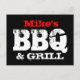 BBQ party invitation postcards | Personalized. Change the quantity to get the cheapest price per card. Personalizable invite text on the back. Your name barbeque and grill. Outdoor cooking fun.