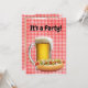 Beer mug and hotdog with red and white gingham for a BBQ party invite.
