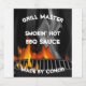 A graphic illustration of a flaming barbecue grill by artist/designer Charmaine Paulson on a BBQ sauce label.