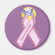 Adorable cherub resting on a stylized pink BCA ribbon, design by CRS