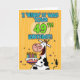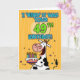 "I 'herd' it was your 49th birthday!" fun b-day cow holding a birthday cake greeting card.