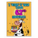 "I 'herd' it was your 62nd birthday!" fun b-day cow holding a birthday cake greeting card.