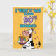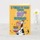 "I 'herd' it was your 90th birthday!" fun b-day cow holding a birthday cake greeting card.