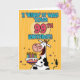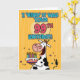 "I 'herd' it was your 99th birthday!" fun b-day cow holding a birthday cake greeting card.