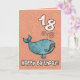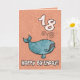 Happy birthday whale - 18 years old Cute humpback whale on an age specific birthday greeting card. Inside text: "Hope you have a whale of a time!"