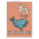 Happy birthday whale - 85 years old Cute humpback whale on an age specific birthday greeting card. Inside text: "Hope you have a whale of a time!"