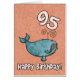 Happy birthday whale - 95 years old Cute humpback whale on an age specific birthday greeting card. Inside text: "Hope you have a whale of a time!"