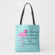 You'll have plenty of room for all of your necessities and look oh so cute carrying them with this flamingo and polka dot quote tote.