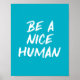 A motivational typography quote art print that says Be a Nice Human in an aqua blue and white design.