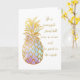This blank greeting card features a watercolor pineapple with faux gold accents. The script reads "be a pineapple stand tall wear a crown and be sweet on the inside."