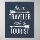 Be a traveller, not a tourist. Our art print features the quote in white script and block monoline typography, embellished with two white arrow illustrations on a rich navy blue background. Perfect gift for the travel lover or travel agent in your life. Makes a gorgeous addition to a gallery wall of vacation photos!