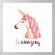 Be Amazing Pink Unicorn Head Poster