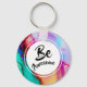 Be Awesome Pink and Turquoise Abstract Watercolor Keychain