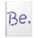 Be reminded to be. This simple word is made from a blue and white abstract drawing by Cheryl Paton, and is printed on notebooks as an affirmation.