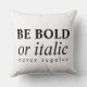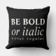 Stylish and chic, this Black and White Be Bold Or Italic, Never Regular Throw Pillow is the perfect pillow for writers and anyone who never want to be just like everyone else.