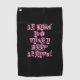Be Calm and Take A Deep Breath with distressed letters. Personalize this Golf Towel with your message and laugh your way around the links. Pink and black text on black background.