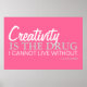 La créativité est la drogue sans laquelle je ne peux pas vivre. Avec les mots de Cecil B. DeMille. Ce poster noir aux tons gris et blanc est parfait pour votre élève.