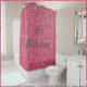Remind yourself every morning to BE FABULOUS with this raspberry coloured, faux glitter shower curtain. Lettering in dark grey. Not for the faint of heart - this daring design will make your bathroom sparkle!