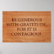 Be Generous with Gratitude, for it is contagious - an inspirational quote on wooden texture background