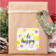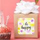 Modern calligraphy inspirational quote - be happy - at pink and yellow watercolor dots background | Bigstock® - All Rights Reserved.