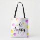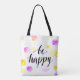 Modern calligraphy inspirational quote - be happy - at pink and yellow watercolor dots background | Bigstock® - All Rights Reserved.