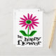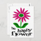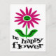 This design is of a cute "happy flower." The flower has a smiling face and colourful petals and a stem with leaves. The slogan "Be Happy Flower" is in a cute, happy font. This design encourages everyone to be a happy flower and that's a wonderful thing. Floral design that can be used for boys and girls, men and women.
