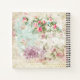 A notebook with the saying: Be Inspired. The word inspired is written in a cool trendy script font. Designed with an elegant pink magenta butterfly with purple accents. The background is a shabby vintage collage with pink roses and other decorative elements. A charming whimsical vibe.