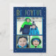 Spread cheerful winter vibes with this holiday card featuring the bold message “Be Joyful” above a modern three-photo collage. Playful, colourful typography pops against a deep navy snowfall background for a fun, kid-friendly look. Personalize with your favourite photos and family line for a bright, happy greeting. The back features a coordinating bright blue snow-dot pattern for a clean, festive finish.