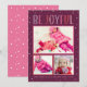 Send bright winter cheer with this holiday card featuring the message “Be Joyful” above a modern three-photo collage. A deep plum snowfall background and pink photo frames create a playful, kid-friendly look that pops in the mailbox. Personalize with your favourite photos and family line for a warm seasonal hello. The back features a coordinating pink snow-dot pattern for a polished, festive finish.