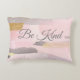 Lovely accent pillow with the thoughtful reminder to be kind. Grey script lettering on an abstract background of pinks, greys, with tan accent. Perfect for dressing up any sofa, chair, bed or daybed.
