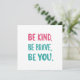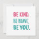 Empower your little ones with our "Be Kind, Be Brave, Be You" design, perfect for kids who embody positivity and courage. This uplifting quote is ideal for teaching children the values of kindness, bravery, and self-confidence. Whether it's for school, playdates, or family outings, this design will remind them to stay true to themselves while spreading good vibes