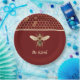 This design features a royal bee in black and gold against a burgundy background, with Be Kind written underneath. You can edit this text, such as adding your name instead, in the Personalized section. There's a golden line and honeycomb at the top of this design.