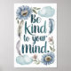 Be Kind to Your Mind Floral and Feather Art Poster