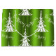 A colourful, green Christmas gift bag with a pattern of white, modern Christmas trees and the festive greeting of 'Be Merry', all on a vibrant green background.