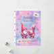 These two Gnomes are getting together to exchange Valentine's gifts. They are both dressed in their finest pink and white hearts and look quite fashionable. They are set against a background of watercolor sponge work in pink and blue and there are hearts floating about. There are also some envelopes with hearts on them. Typography reads "Be Mine Valentine" at the top and "Happy Valentine's Day from:" at the bottom where you use the template provided to put your name. The back side has a pattern of white with pink hearts.