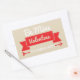 This fun Valentine's Day sticker design features a red banner and the text 'Be Mine Valentine' '14 February'. Beige background is optional and can be changed to any colour.