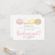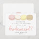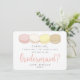 Ask your best girls to stand with you with these beautiful cards. Rounded rectangle cards feature a row of French macarons in pastel hues of ivory, yellow, pink and tan, with a combination of chic minimalist grey and peachy pink handwritten style lettering. Add your bridesmaid's name, your name and your wedding date for a sweet personalized keepsake. Default body text reads, "I can't say I do without you! Will you be my bridesmaid?" and can be altered if desired.