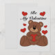 Cute valentines day card with cute teddy bear holding a red heart “ be my valentine “